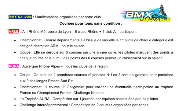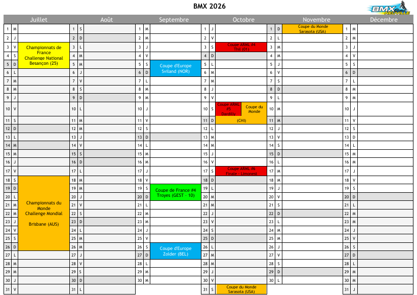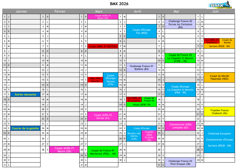Calendrier BMX saison 2026